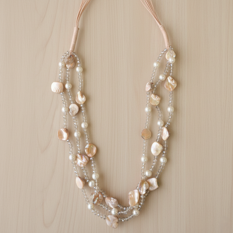 Chunky Multi Strand Pearl Statement Necklace | Coastal Boho | Statement Jewelry