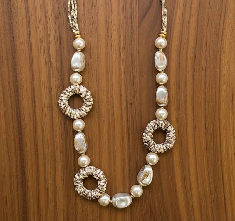 Chunky Golden Pearl and Seashell Multi Strand Necklace