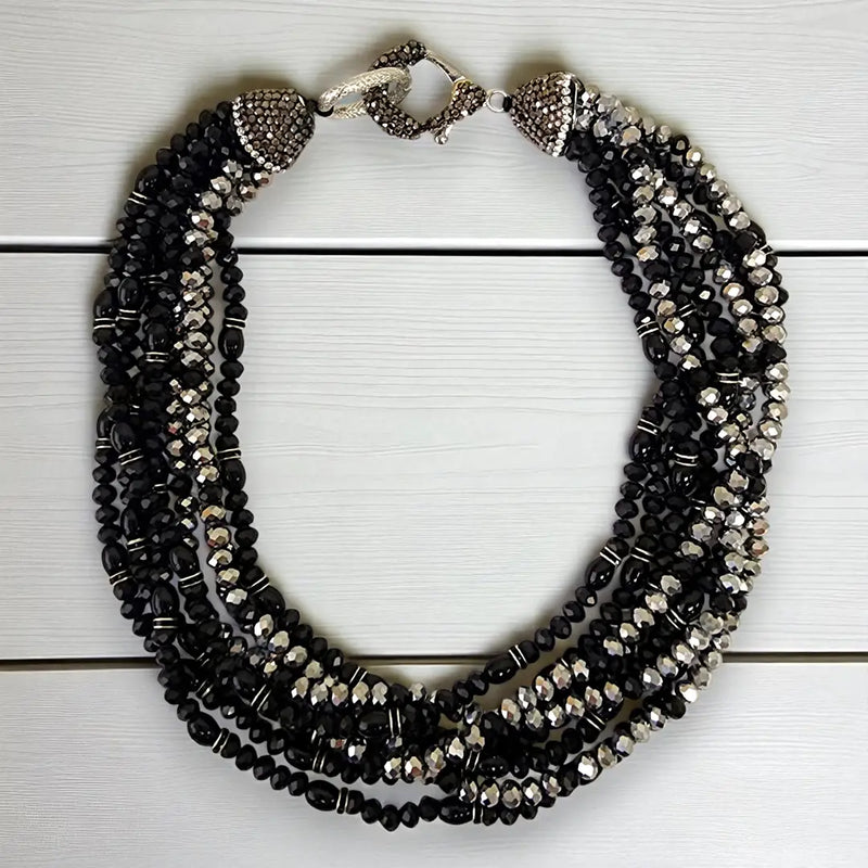 Silver Seed Bead & Pearl Multi Strand Statement Necklace