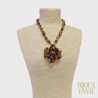 Chunky Tortoise Shell Bead Flower Statement Necklace